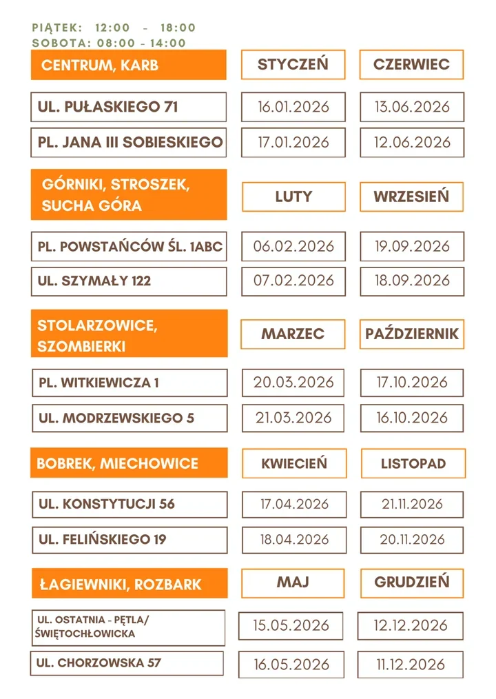 – 18 kwietnia 2026 r., 8.00–14.00 – ul. Felińskiego 19