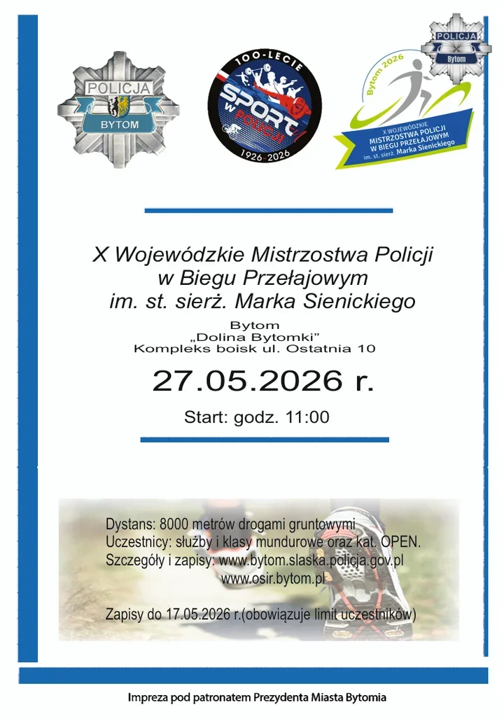 27 maja w Dolinie Bytomki wystartują X Wojewódzkie Mistrzostwa Policji w Biegu Przełajowym imienia starszego sierżanta Marka Sienickiego. Na trasę wyjdą nie tylko mundurowi, ale też cywile i uczniowie klas mundurowych. Zawody mają sportowy charakter, jednak ich tłem jest pamięć o policjancie z Komendy Miejskiej Policji w Bytomiu, który zginął podczas służby.