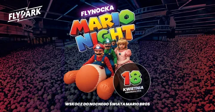 Bytom szykuje noc pełną skakania, zabawy i klimatu Super Mario FLYNOCKA SUPER MARIO w FlyParku Bytom wraca jako nocowanka, podczas której dzieci mogą aktywnie spędzić wieczór, poznać nowych znajomych i przeżyć coś naprawdę nietypowego w bezpiecznym miejscu. Jeśli szukasz pomysłu na 18–19 kwietnia, to może być strzał w dziesiątkę.