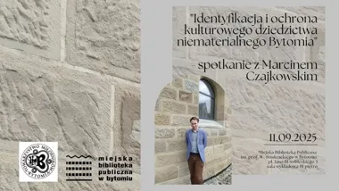 Zaproszenie na spotkanie autorskie poświęcone identyfikacji i ochronie niematerialnego dziedzictwa kulturowego Bytomia. Prezentacja pracy magisterskiej będzie okazją do poznania lokalnych praktyk, zwyczajów i pamiątek, które tworzą tożsamość miasta, a także do dyskusji na temat sposobów ich zachowania.